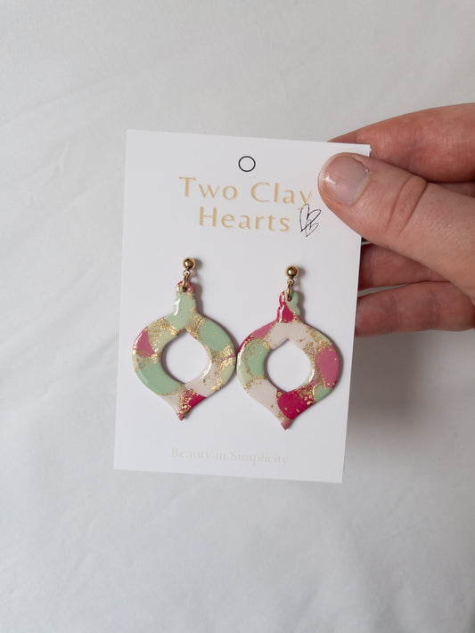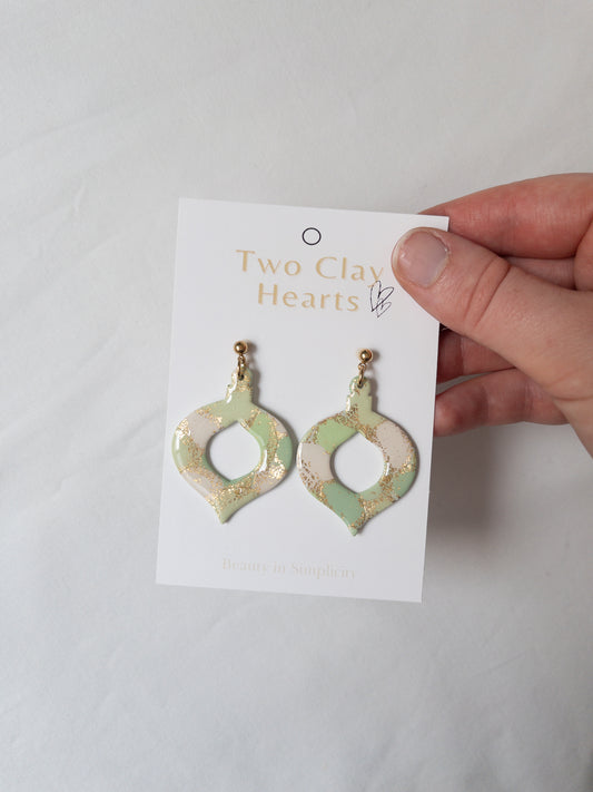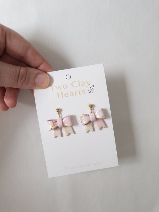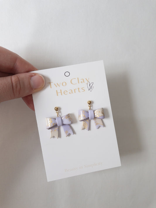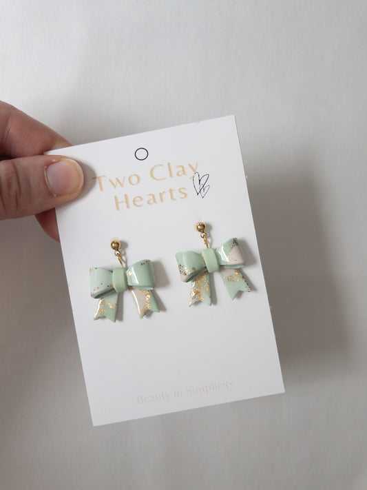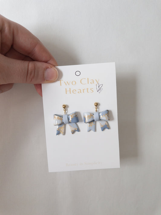 Sold outPastel Blue Gold Leaf Bow Dangles