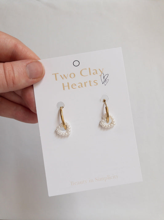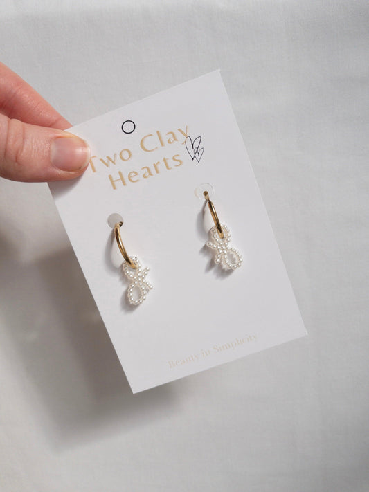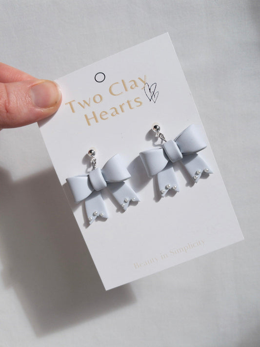 Large Blue Clay Bow Dangle Earring with Pearl Details