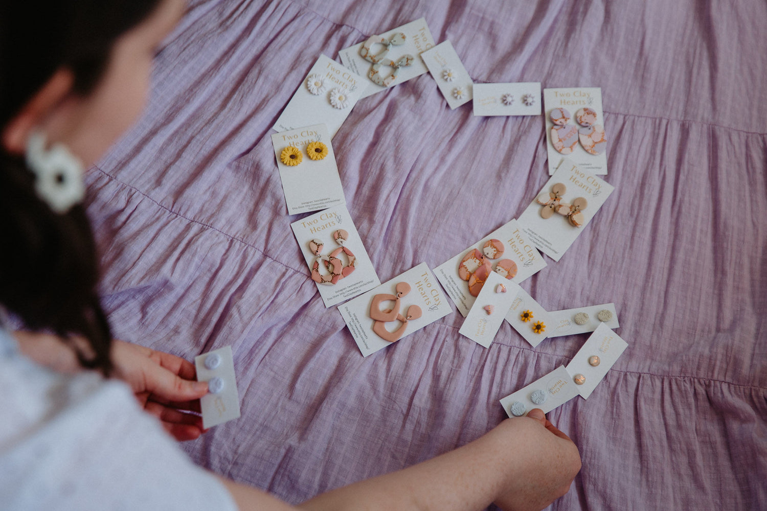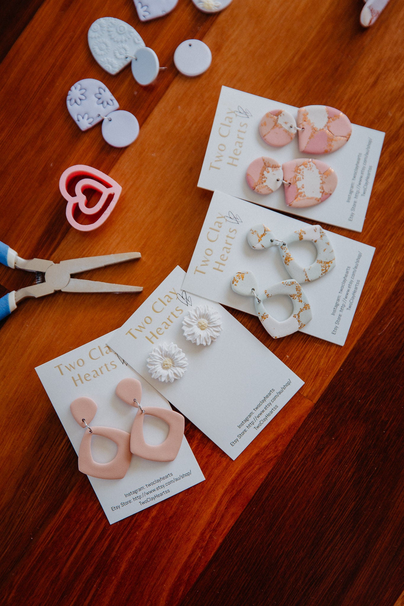 The name represents my creations because I use polymer clay, a lightweight form of clay. Many of my designs and studs incorporate love hearts, and when wearing a pair, you end up having two clay hearts sitting on your ears.